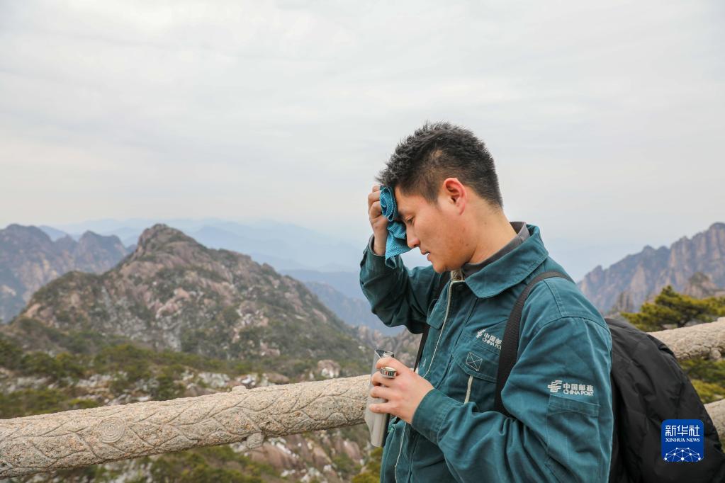 作為安徽黃山風(fēng)景區(qū)內(nèi)唯一的郵政步班投遞員,“90后”小伙謝菲俊每天要背負(fù)幾十斤的郵包在平均海拔1300多米的“云端”徒步12公里,上下臺(tái)階約12000級(jí),將各種郵件送達(dá)33個(gè)投遞點(diǎn)。由于山高路遠(yuǎn),又是安徽省海拔最高的投遞段道,謝菲俊被大家親切地稱為“云端信使”。