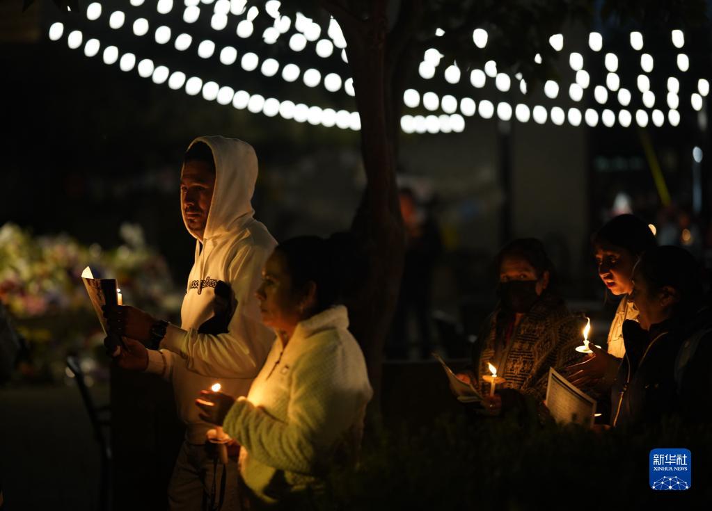 1月31日,在美國(guó)加利福尼亞州半月灣市,人們手持蠟燭哀悼槍擊事件遇難者。