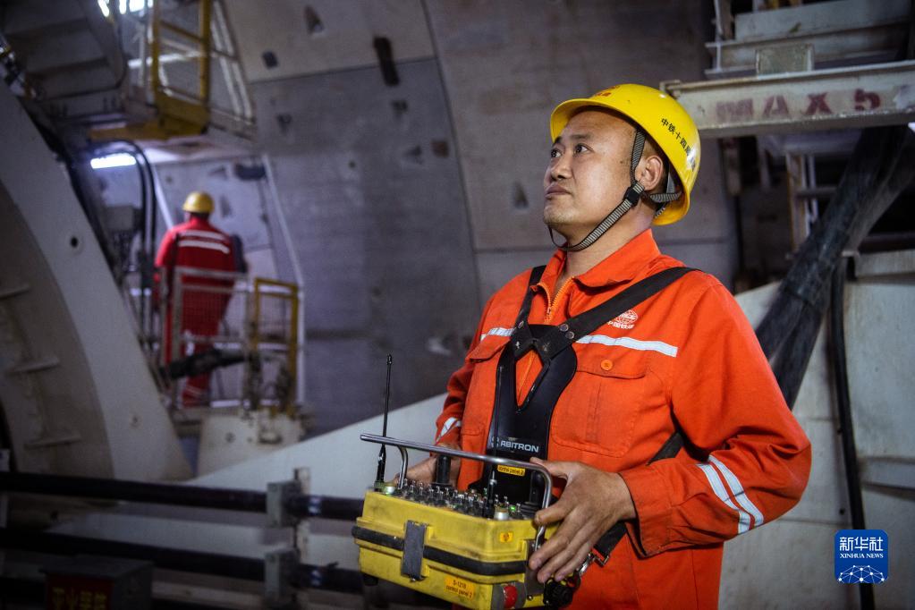 2月1日,中鐵十四局工人在拼裝管片。