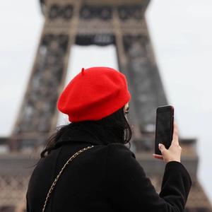 2月1日,一名游客在法國巴黎埃菲爾鐵塔附近的特羅卡德羅廣場參觀。