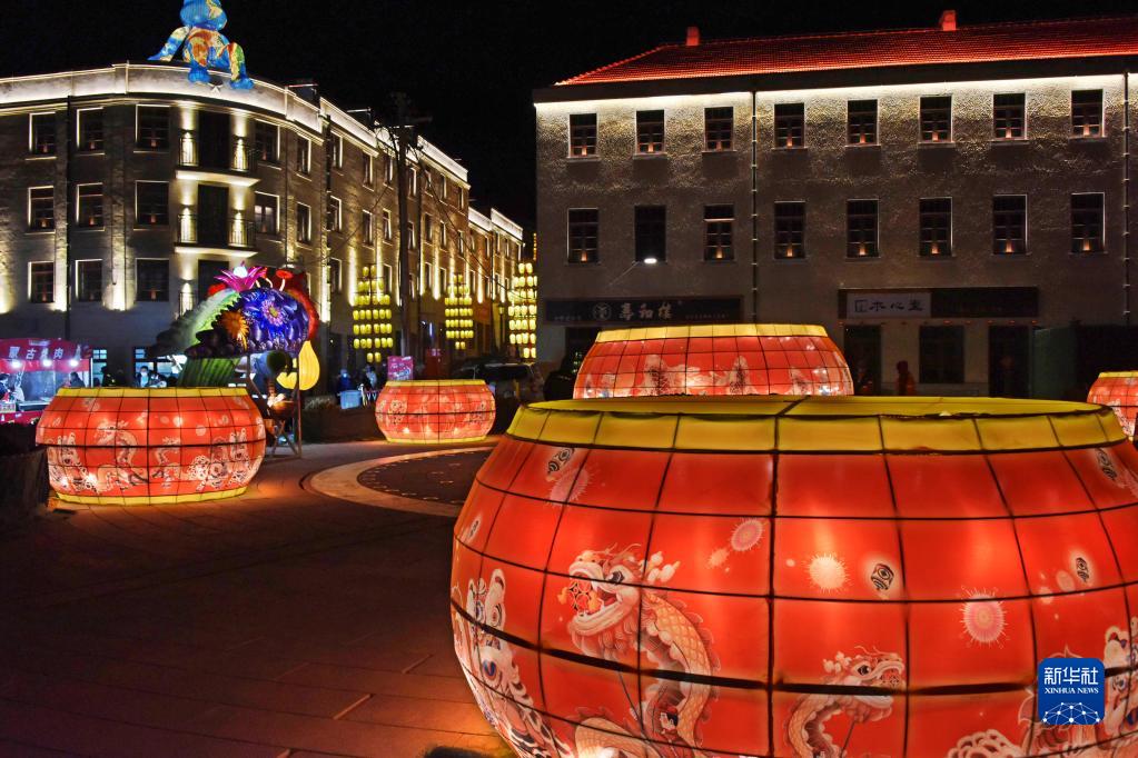 元宵節臨近,青島市市南區“逛街里”新春燈會上的璀璨花燈點亮了老城區的大街小巷,吸引人們前來賞燈。