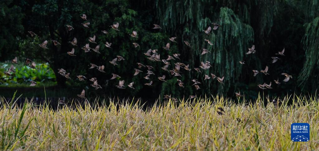 廣州海珠濕地稻田里的斑文鳥(2020年7月25日攝)。