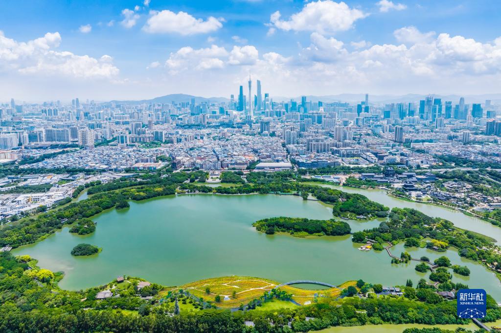 這是2023年1月20日拍攝的廣州海珠濕地海珠湖(無人機照片)。