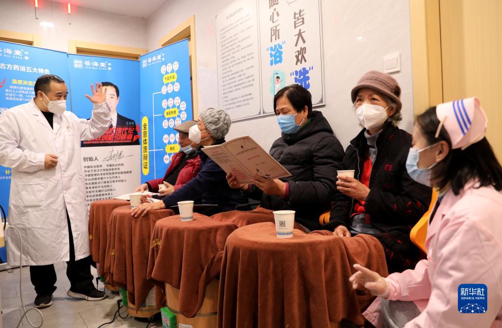 2月2日,社區(qū)居民在足部保健時聽中醫(yī)師講解經(jīng)絡(luò)保健知識。