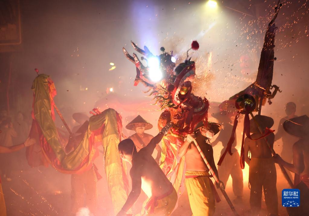人們在廣西南寧市賓陽縣縣城舞炮龍(2月1日攝)。