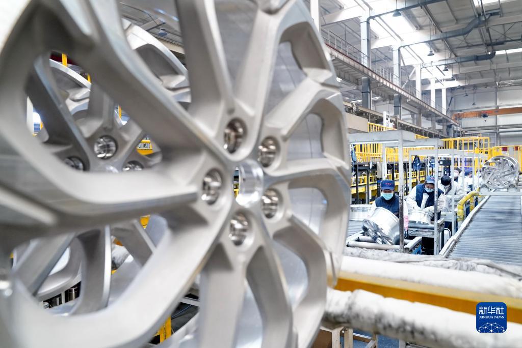 2月2日,工人在秦皇島經濟技術開發區一家車輪企業的生產車間工作。