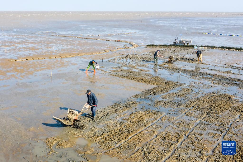初春時節,福建省福州市馬尾區瑯岐島沿海迎來繁忙的種蟶時節,漁民們翻耕灘涂播種蟶苗,等待5月份開始的縊蟶收獲季節。瑯岐島位于福建閩江入海口,沿岸灘涂廣闊,餌料豐富,有得天獨厚的養殖優勢。