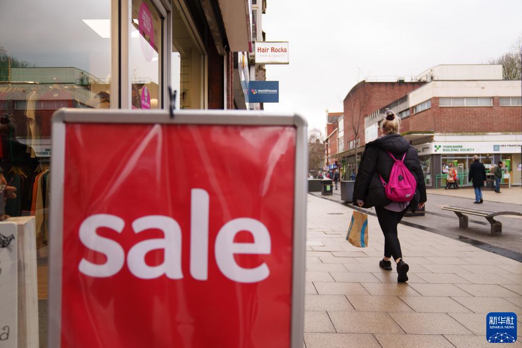 2月2日,在英國曼徹斯特,一名女子經(jīng)過一家打折店鋪。