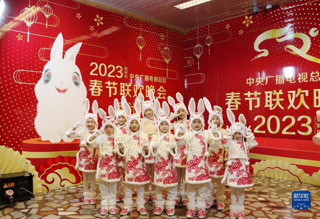 馬蘭花兒童聲合唱團在春晚彩排前合影留念(1月18日攝)。