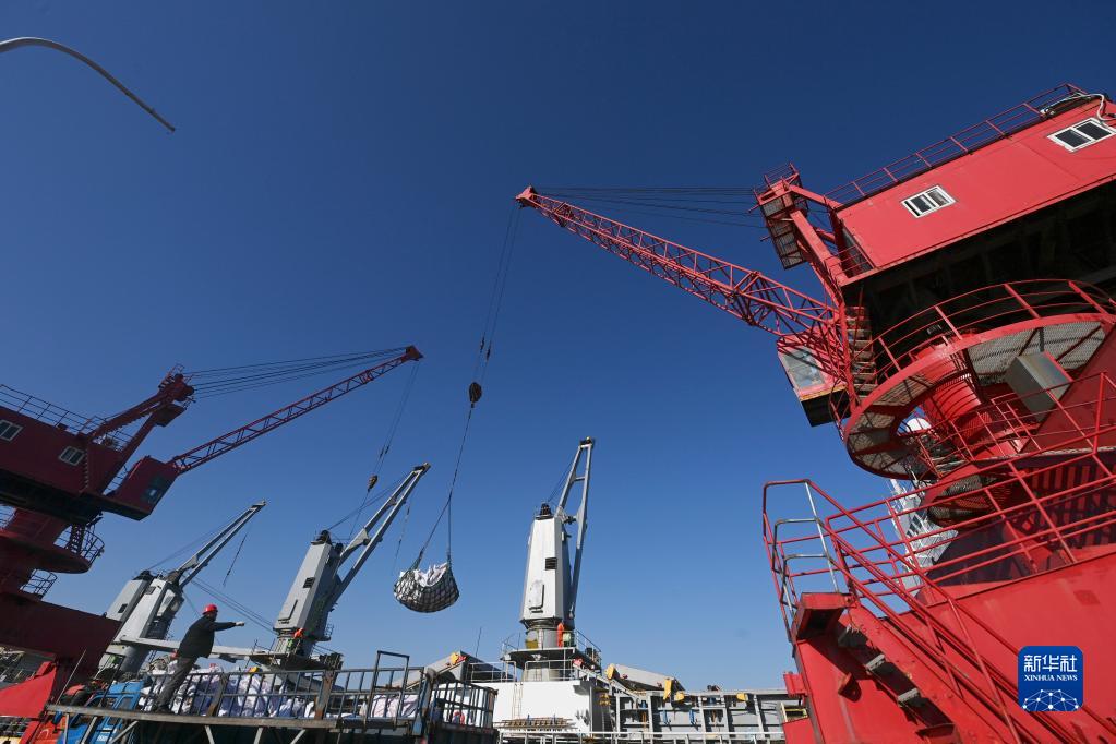 舟山遠(yuǎn)洋漁業(yè)基地的碼頭上,遠(yuǎn)洋漁船正在卸貨(1月31日攝)。舟山遠(yuǎn)洋漁業(yè)基地2022年遠(yuǎn)洋自捕魚進(jìn)關(guān)量達(dá)62萬噸,2016-2022年累計(jì)近278萬噸。