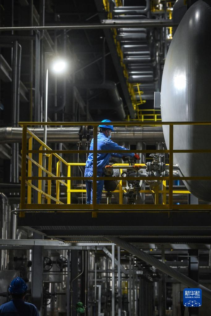 舟山綠色石化基地煉油芳烴事業部催化部員工在二期催化裝置區檢查(1月31日攝)。2022年石化基地完成投資395.9億元,累計加工原油3702.76萬噸,實現產值2314億元。春節期間該基地不停工,一直處于“抓訂單、忙生產”的狀態。