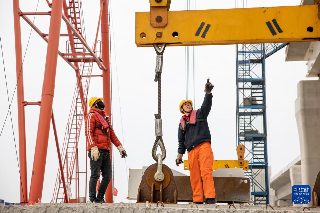 工人們在杭甬高速復線一期工程現(xiàn)場工作(2月1日攝)。