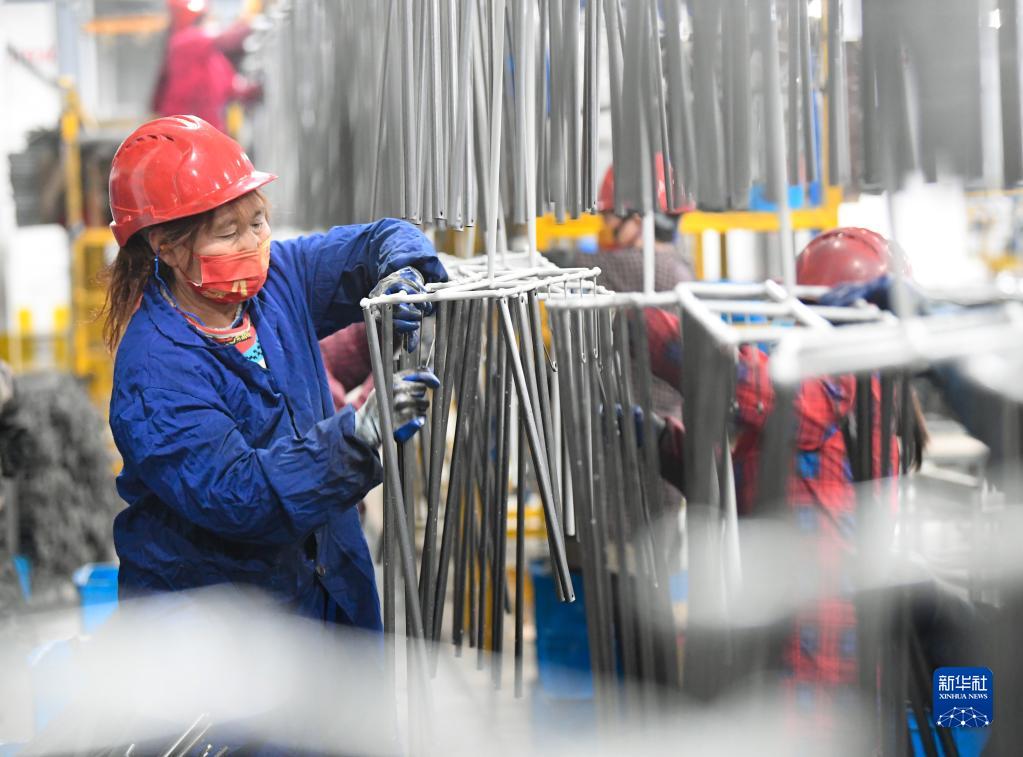 在位于臺州臨海的浙江正特股份有限公司,工人在管材噴涂生產線上工作(2月2日攝)。
