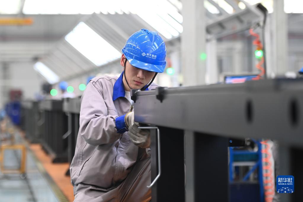 工人在海天國際控股有限公司海天大港生產基地作業(2月1日攝)。