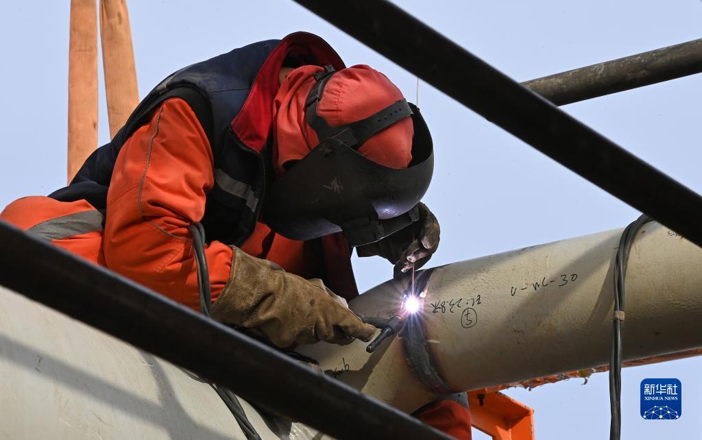 2月2日,工人在海油工程塘沽建造場地進行焊接作業。