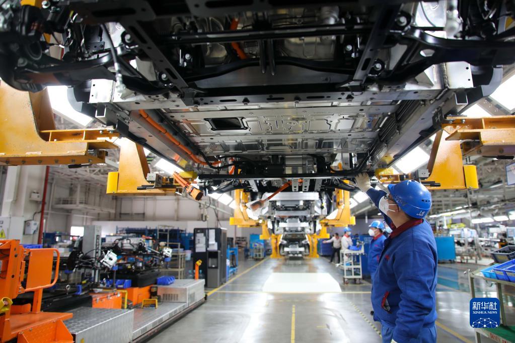 2月3日,工人在奇瑞汽車股份有限公司新能源二期工廠總裝車間作業(yè)。