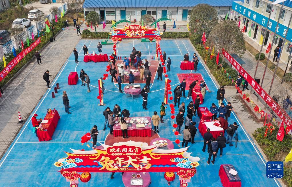 這是2月3日在位于重慶的中建六局科學城隧道工程一標段項目部拍攝的迎元宵主題活動現場(無人機照片)。