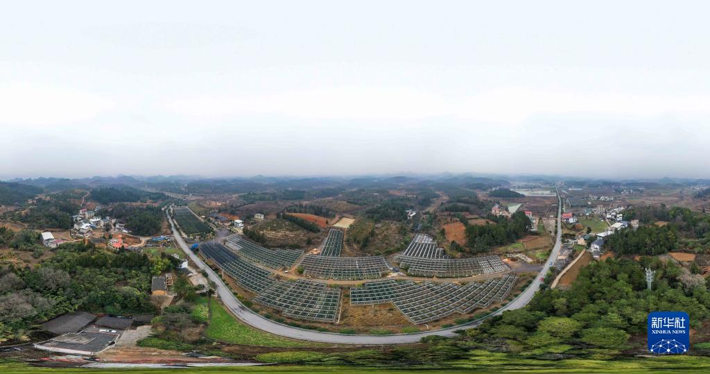 這是2月3日拍攝的貴州玉屏侗族自治縣油茶育苗中心(無人機全景照片)。