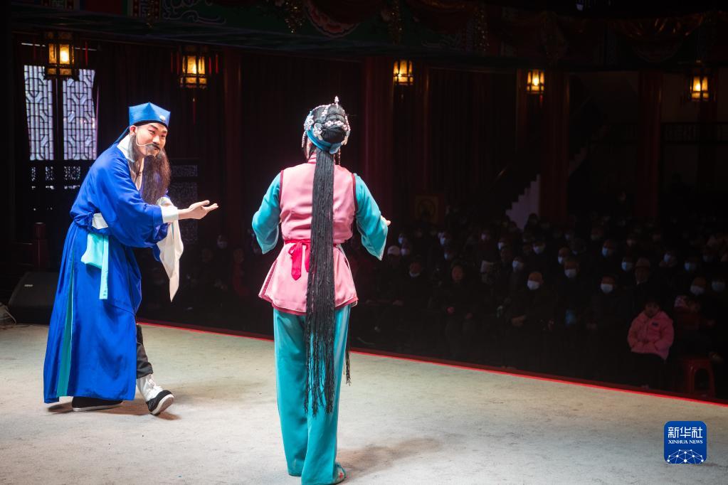 2月3日,武漢楚劇院演員在表演楚劇《打豆腐》。