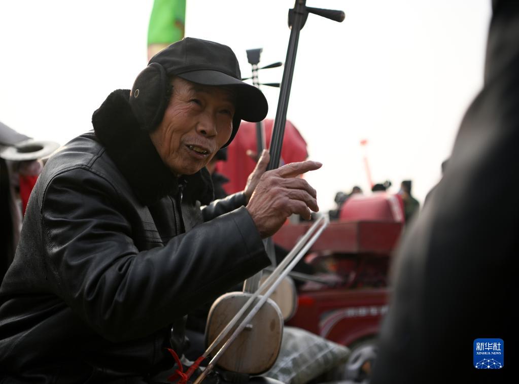 當(dāng)日是正月十三,時(shí)隔三年,河南省寶豐縣馬街書會(huì)線下“重啟”。來自全國各地的說書藝人負(fù)鼓攜琴,聚集于此。在麥田中,他們以天作幕,以地為臺(tái),說書會(huì)友,彈唱獻(xiàn)藝。