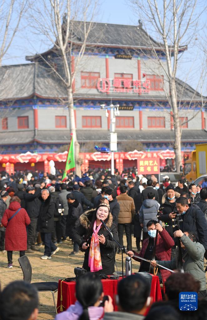 當日是正月十三,時隔三年,河南省寶豐縣馬街書會線下“重啟”。來自全國各地的說書藝人負鼓攜琴,聚集于此。在麥田中,他們以天作幕,以地為臺,說書會友,彈唱獻藝。