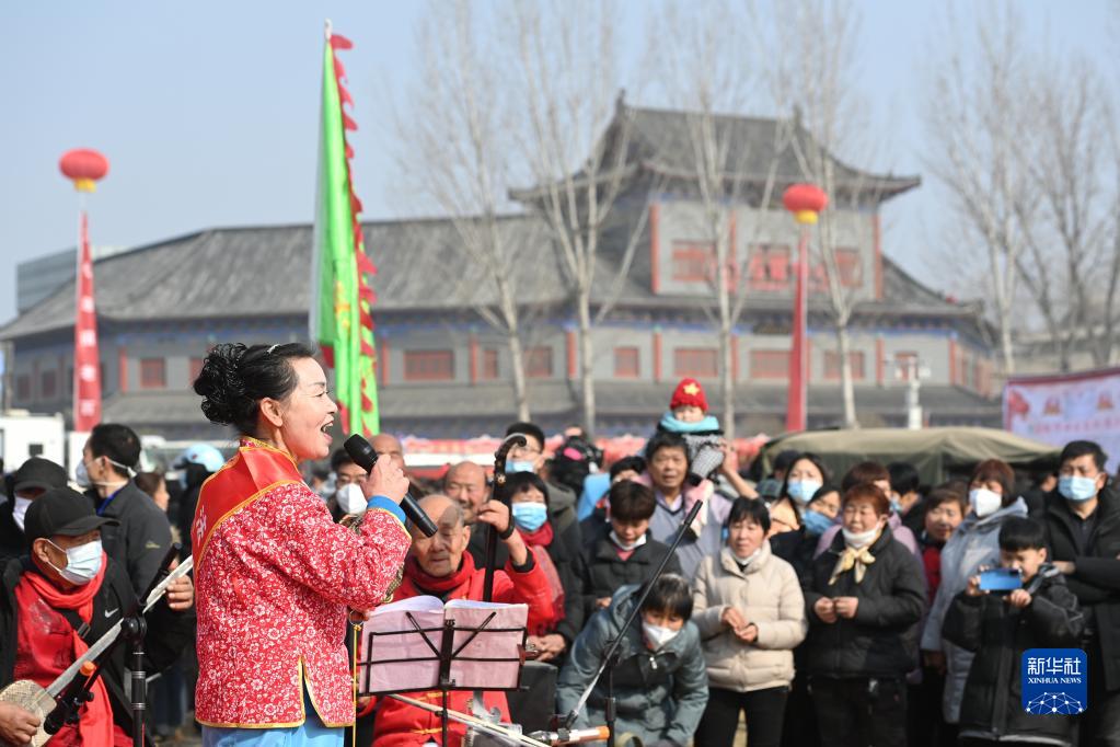 當(dāng)日是正月十三,時(shí)隔三年,河南省寶豐縣馬街書會(huì)線下“重啟”。來自全國各地的說書藝人負(fù)鼓攜琴,聚集于此。在麥田中,他們以天作幕,以地為臺(tái),說書會(huì)友,彈唱獻(xiàn)藝。