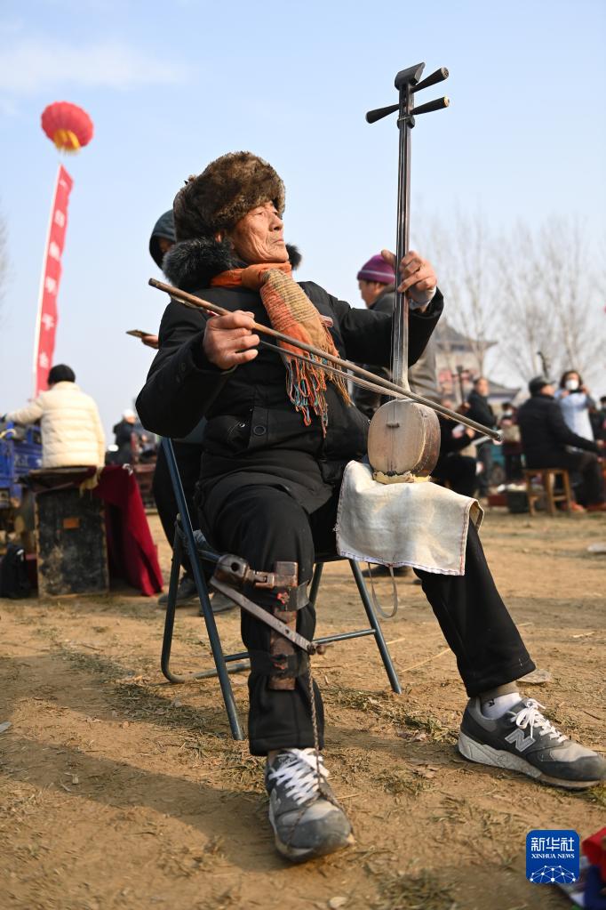 當日是正月十三,時隔三年,河南省寶豐縣馬街書會線下“重啟”。來自全國各地的說書藝人負鼓攜琴,聚集于此。在麥田中,他們以天作幕,以地為臺,說書會友,彈唱獻藝。