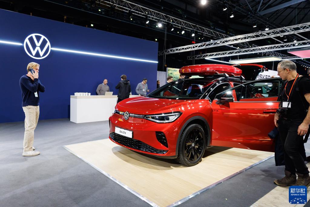 2月3日,人們在瑞典斯德哥爾摩舉辦的電動車展上參觀大眾電動車。