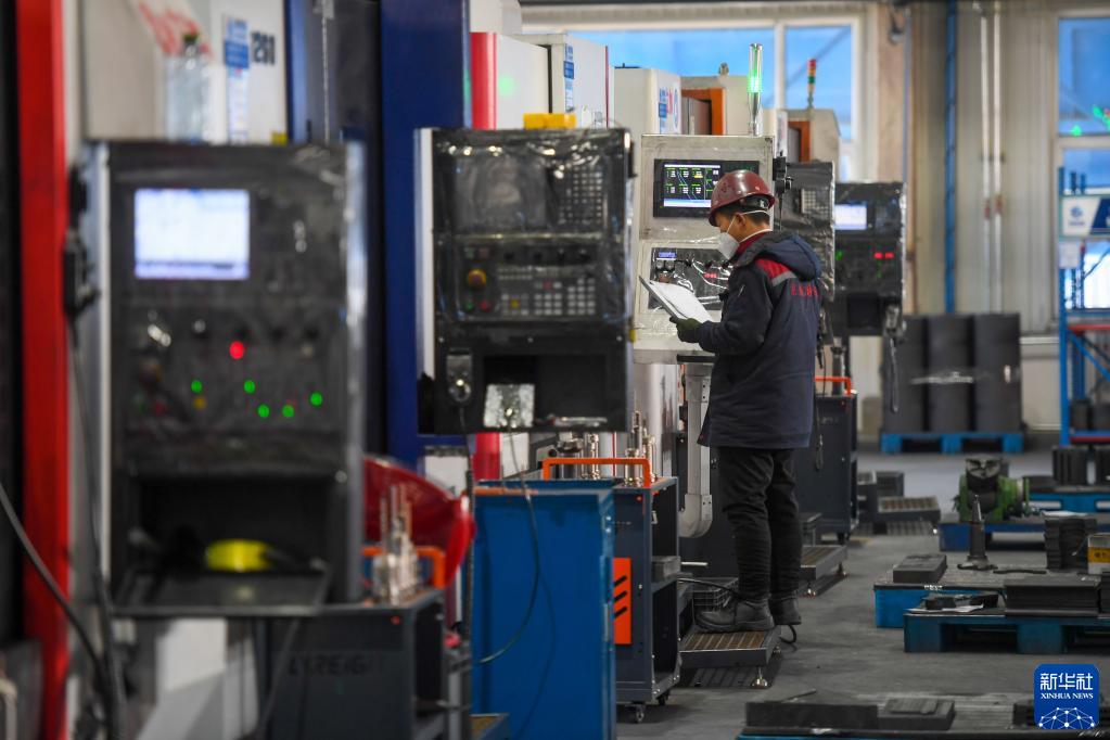 2月3日,在內(nèi)蒙古赤峰市寧城縣一家科技有限公司的車間內(nèi),工人操作機(jī)器進(jìn)行生產(chǎn)。