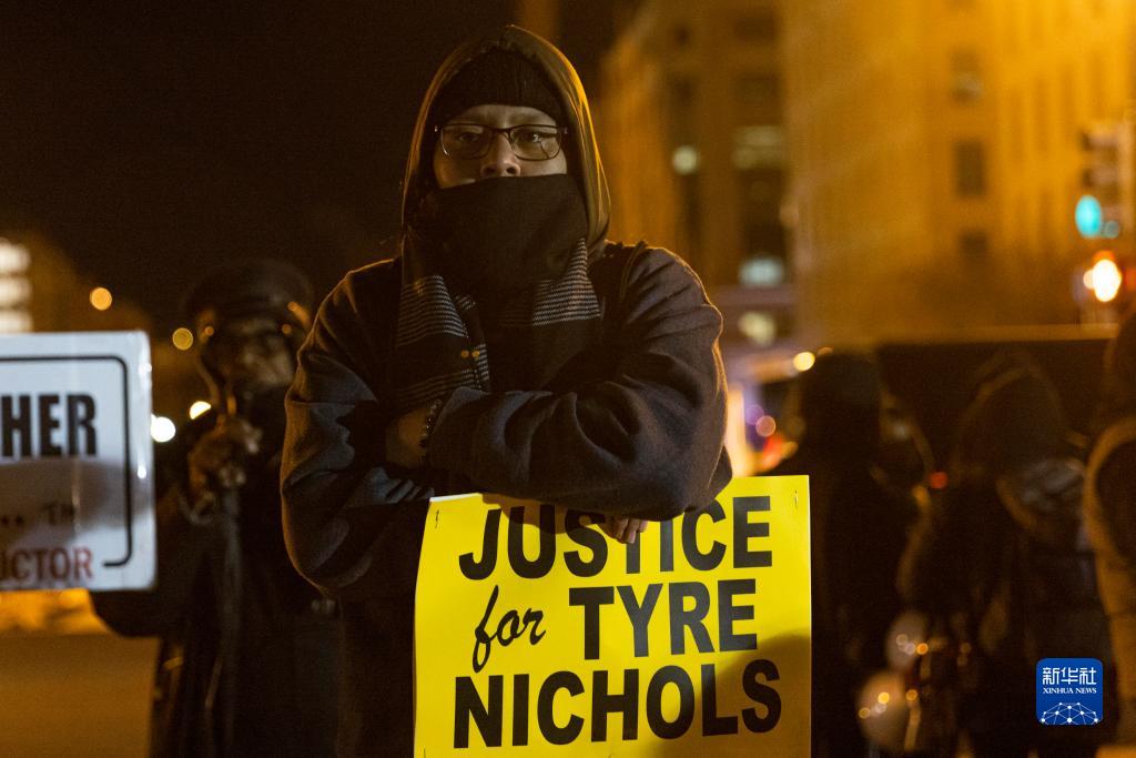 1月27日,在美國首都華盛頓,人們在白宮前抗議非洲裔男子泰爾·尼科爾斯遭警察毆打身亡。