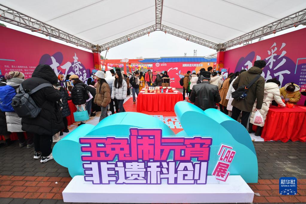 2月4日,市民和游客在湖南非遺元宵喜樂會現(xiàn)場的非遺科創(chuàng)展區(qū)游玩。