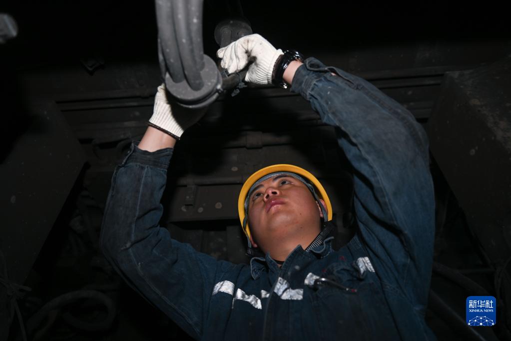 2月4日,在格爾木機務段檢修車間,馬國仁在檢修機車。