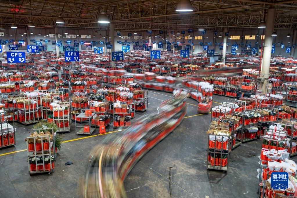 1月31日,臺車在昆明國際花卉拍賣交易中心運輸鮮花。