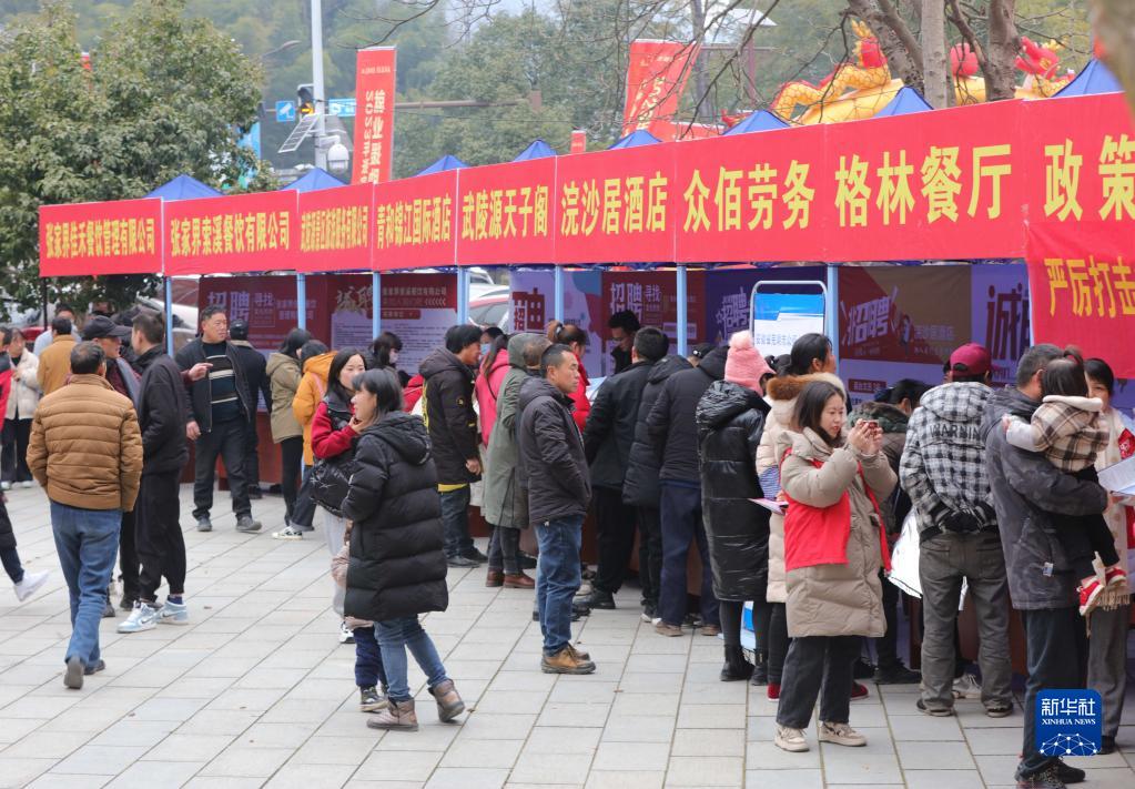 2月4日,在湖南張家界市武陵源區(qū)協(xié)合鄉(xiāng)舉行的“春風(fēng)送暖”農(nóng)村用工招聘會(huì)上,村民在了解崗位信息。當(dāng)?shù)?0多家企業(yè)提供采茶工、廚師、講解員、酒店服務(wù)員等500多個(gè)就業(yè)崗位,幫助更多農(nóng)村群眾實(shí)現(xiàn)家門口就業(yè)。