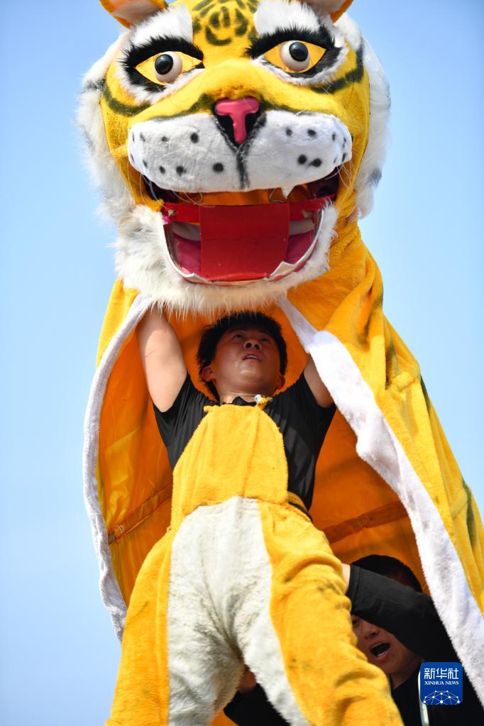 當日,河南省焦作市溫縣陳家溝村流傳數百年的傳統民俗節目“陳家溝舞虎”精彩上演,讓觀眾大飽眼福。