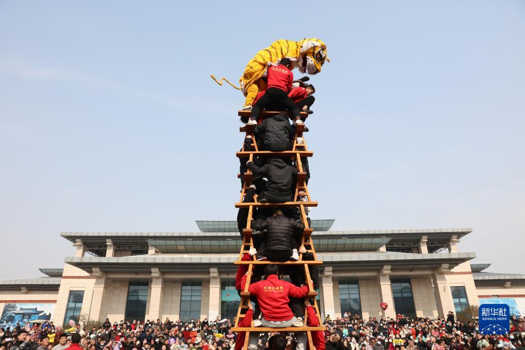 當日,河南省焦作市溫縣陳家溝村流傳數百年的傳統民俗節目“陳家溝舞虎”精彩上演,讓觀眾大飽眼福。