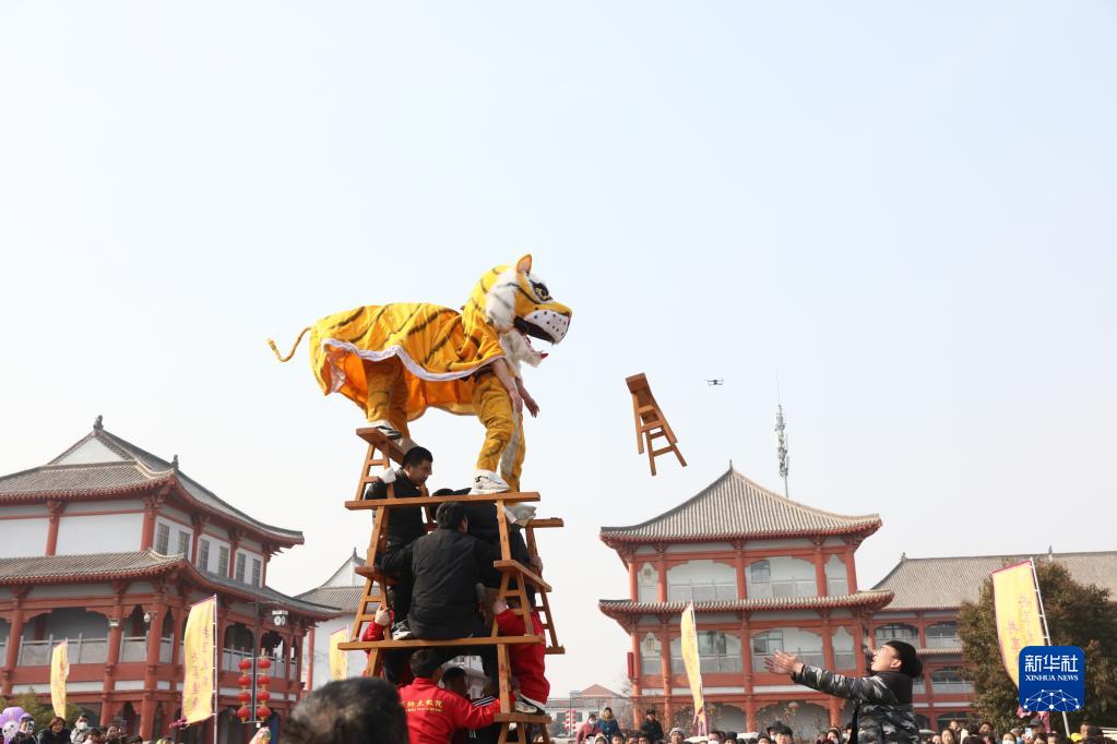當(dāng)日,河南省焦作市溫縣陳家溝村流傳數(shù)百年的傳統(tǒng)民俗節(jié)目“陳家溝舞虎”精彩上演,讓觀眾大飽眼福。