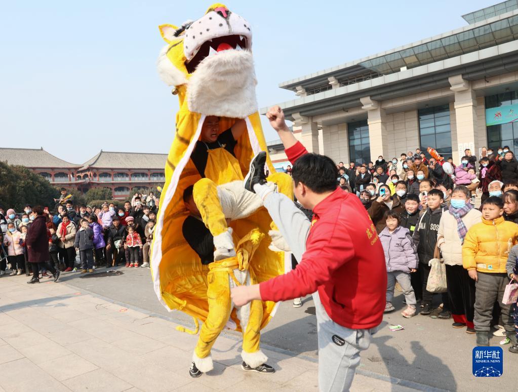 當日,河南省焦作市溫縣陳家溝村流傳數百年的傳統民俗節目“陳家溝舞虎”精彩上演,讓觀眾大飽眼福。