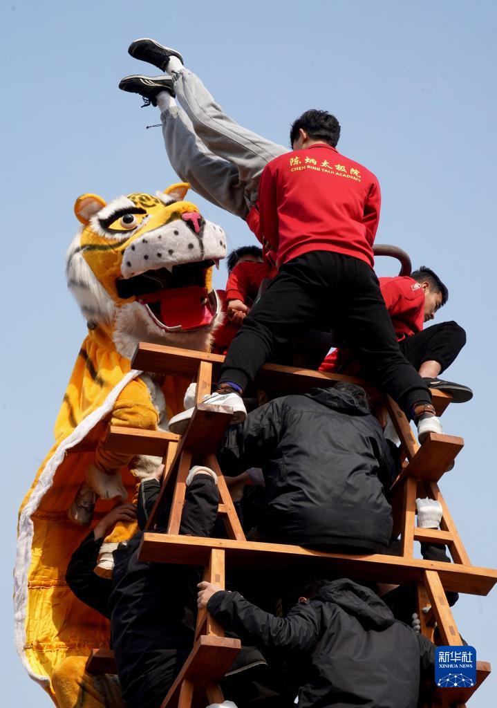 當日,河南省焦作市溫縣陳家溝村流傳數百年的傳統民俗節目“陳家溝舞虎”精彩上演,讓觀眾大飽眼福。