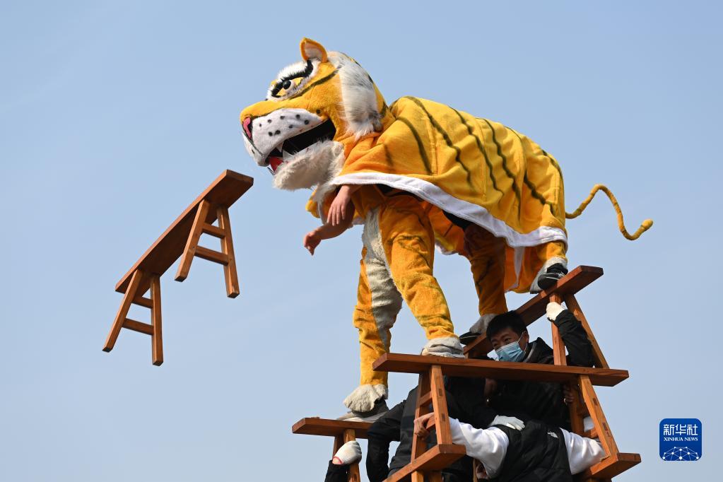 當(dāng)日,河南省焦作市溫縣陳家溝村流傳數(shù)百年的傳統(tǒng)民俗節(jié)目“陳家溝舞虎”精彩上演,讓觀眾大飽眼福。