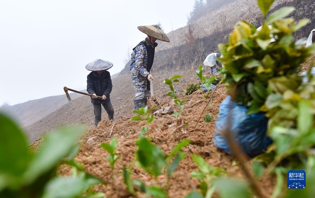 2月4日,村民在貴州省銅仁市松桃苗族自治縣平頭鎮平頭司村種植茶樹。