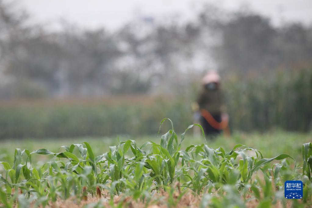 2月4日,在云南省景洪市嘎灑街道的一處玉米種植基地,工人在管理玉米苗。