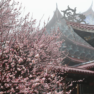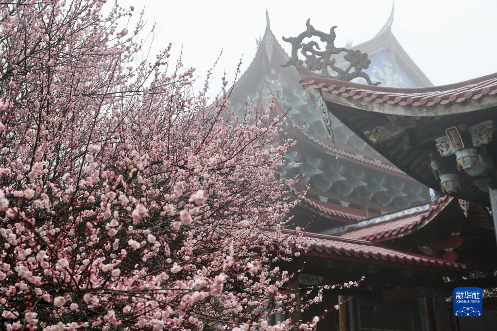立春時節,位于福州北峰山區的千年古剎林陽寺梅花相繼綻放,吸引眾多游客前來游玩賞花。