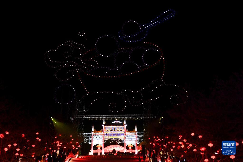 2月4日,在卓資縣九曲廣場,無人機群組成“湯圓”圖案。