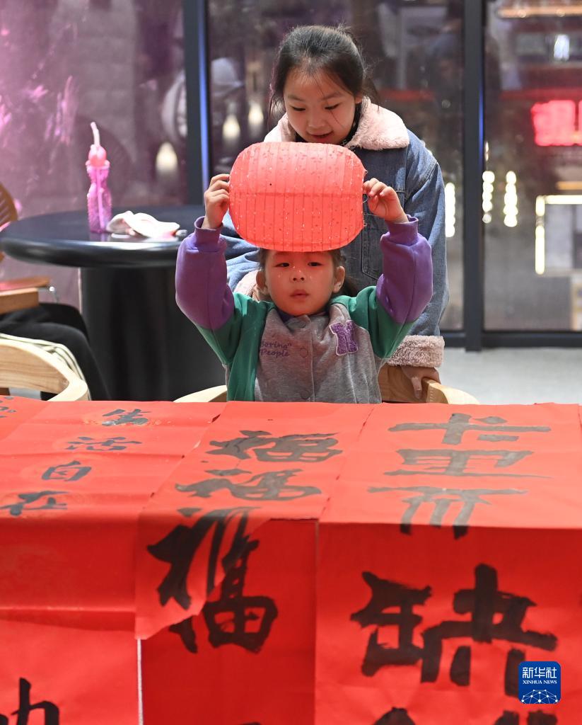 2月4日,兩名小朋友在一處文化體驗(yàn)館里玩耍。