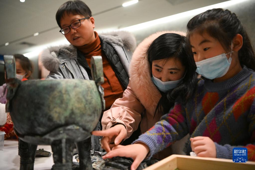 2月4日,游客在中國文字博物館體驗文物拼拼樂。