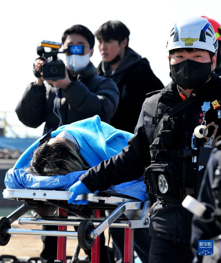 2月5日,在韓國全羅南道木浦市一碼頭,獲救船員被送往醫院。