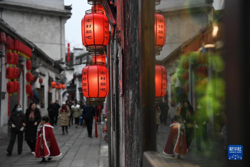 新春里,位于安徽省黃山市黟縣的世界遺產地宏村迎來眾多游客,人們逛祠堂、賞民俗、品咖啡,旅游經濟、夜間經濟、小店經濟在這座皖南古村相互融合,激發了消費活力。