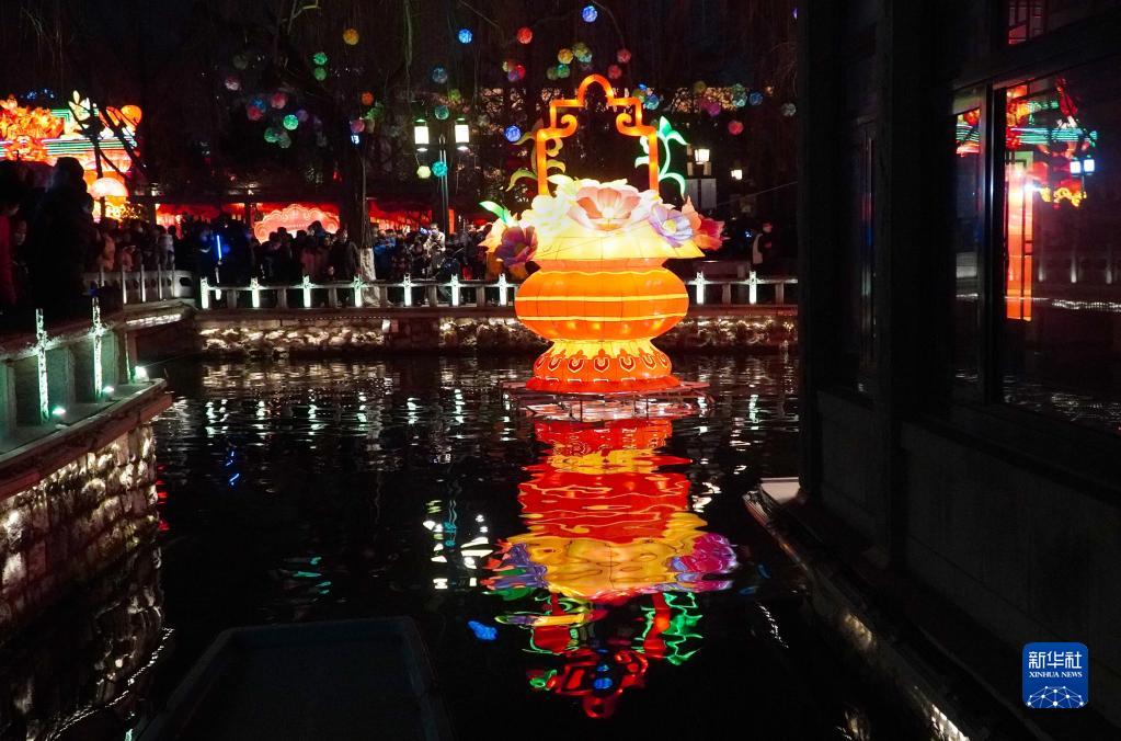 元宵節(jié)來臨之際,山東省濟(jì)南市的趵突泉等多處名泉,潺潺泉水與彩燈交相輝映,流光溢彩的獨(dú)特景觀吸引了不少市民前來賞泉觀燈,喜迎元宵佳節(jié)。