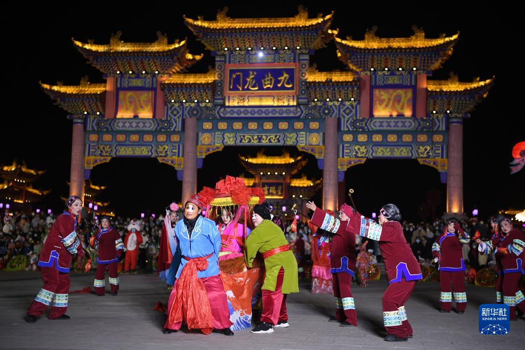 元宵節期間,寧夏鹽池縣開展“龍門祈福游九曲”系列元宵節民俗文化活動,吸引眾多百姓前來參觀體驗,感受濃濃的元宵節氣氛。